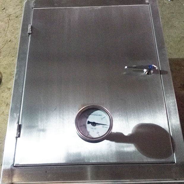 儀表保溫保護(hù)箱箱體由外殼玻璃鋼或鋼板經(jīng)特殊工藝制成。箱體分上箱體、下箱體(為斜面式吻合,吻合面上下端部箱體為弧型)。上下箱體用不銹鋼合葉連接,由橡塑條密封,下端安裝不銹鋼吊扣以壓緊。前開門帶觀察窗,有傾斜式防雨頂蓋,門與箱體之間采用防濺結(jié)構(gòu),能防雨防塵,適與室內(nèi)外安裝。上箱體可向上開90°,且箱內(nèi)裝有開啟支撐,將蝶型螺母擰緊可固定開啟位置,從而方便在箱內(nèi)安裝和調(diào)試儀表。箱內(nèi)底部裝有可在滑軌上前后、左右移動(dòng)的儀表托架,方便調(diào)控儀表安裝位置,給工程技術(shù)人員提供舒適的工作環(huán)境。箱后側(cè)有拆卸的穿管板,供穿裝各種管線用。箱底用一定數(shù)量的塑料密封具電纜接頭。